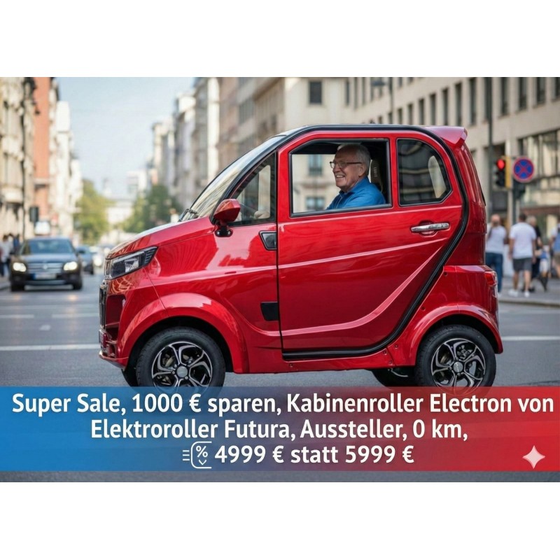 E-Kabinenroller "Electron", 45 km/h, 60V/58Ah Blei-Gel-Akku, bis zu 60 Kilometer Reichweite, 2 Personen, drehbarer Sitz, Vorführer, Tachostand 0 km, wie neu, nie gefahren, keine Kratzer, nur ein Stück, 700 € sparen