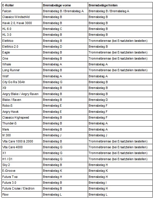Eine übersichtliche Tabelle mit allen passenden Modellen finden Sie weiter unten auf der Seite – so wählen Sie schnell und sicher den richtigen Bremsbelag für Ihren Roller.