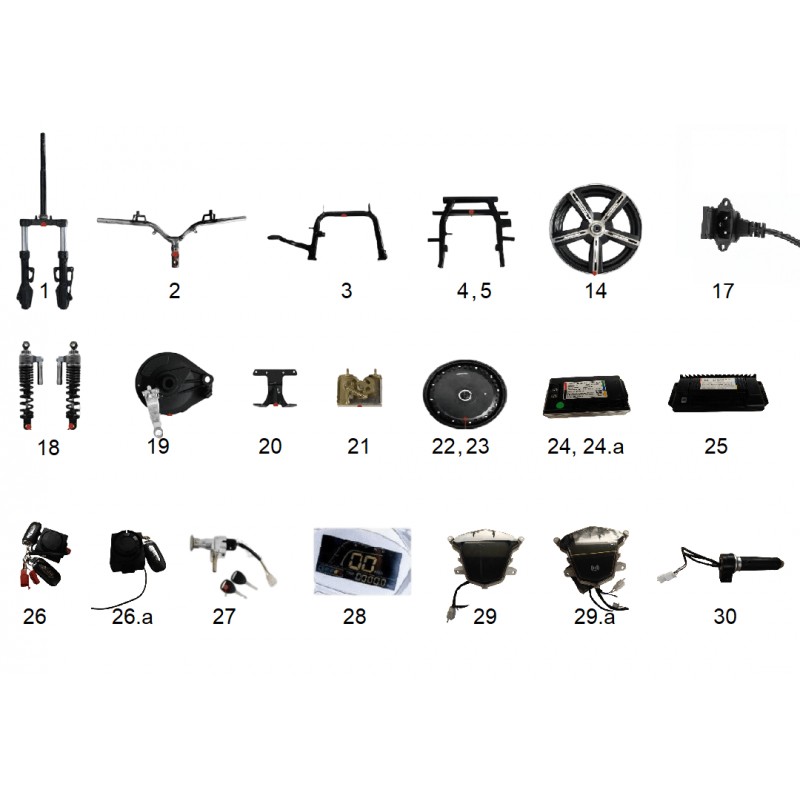 Folgende Ersatzteile für den Elektroroller Wolfkönnen hier bestellt werden, da sie mit den Teilen des Falcon identisch sind: