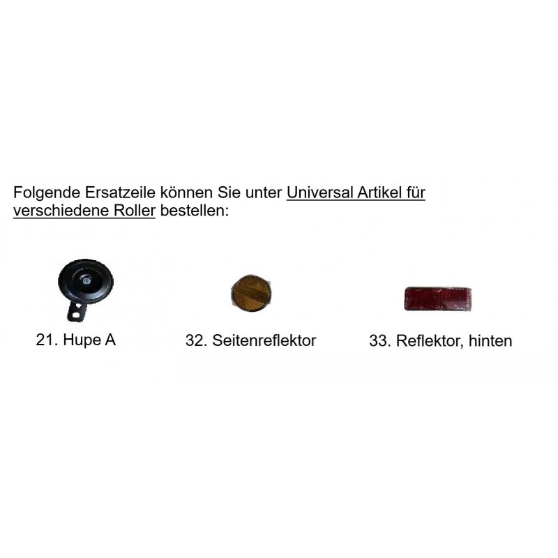 Folgende Ersatzeile können Sie unter Universal Artikel für verschiedene Roller bestellen: