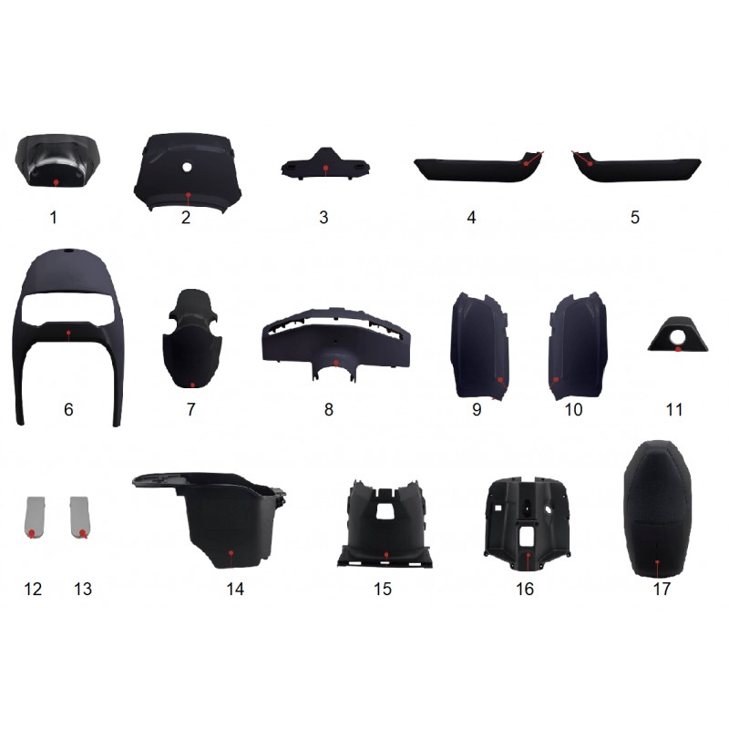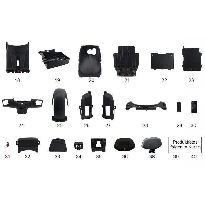 Die Kunststoffteile der Modelle Robo-S 80 km/h und Robo 45 km/h sind weitgehend identisch, bis auf folgende Ausnahmen: