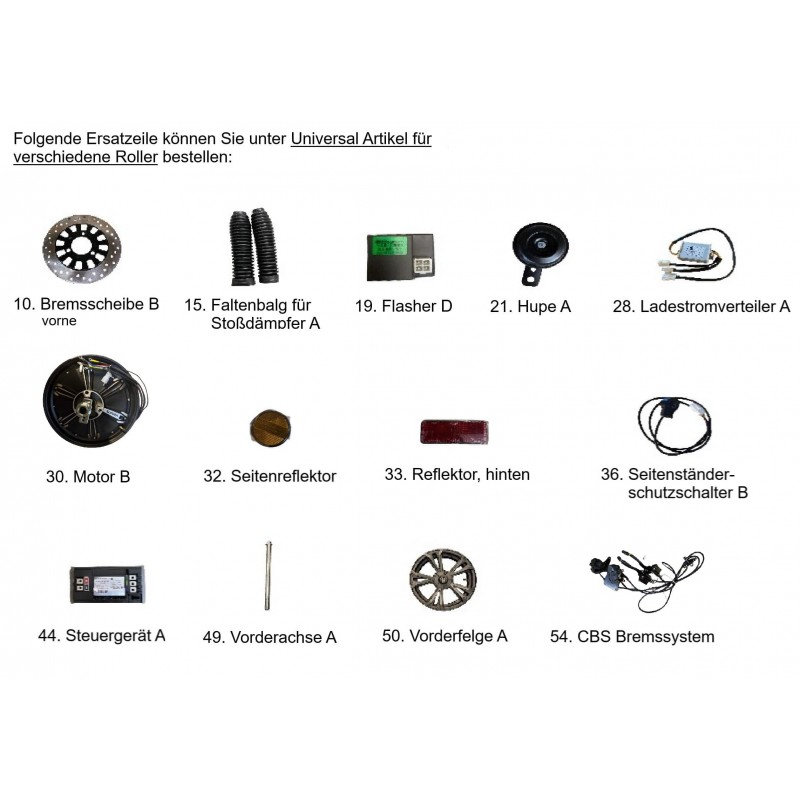 Die mechanischen und elektrischen Ersatzteile der Modelle Robo-S 80 km/h und Robo 45 km/h sind weitgehend identisch, bis auf folgende Ausnahmen:
