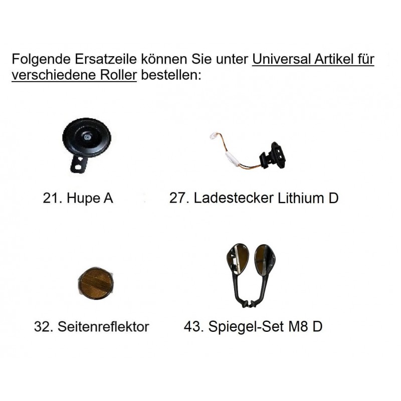 Folgende Ersatzeile können Sie unter Universal Artikel für verschiedene Roller bestellen: