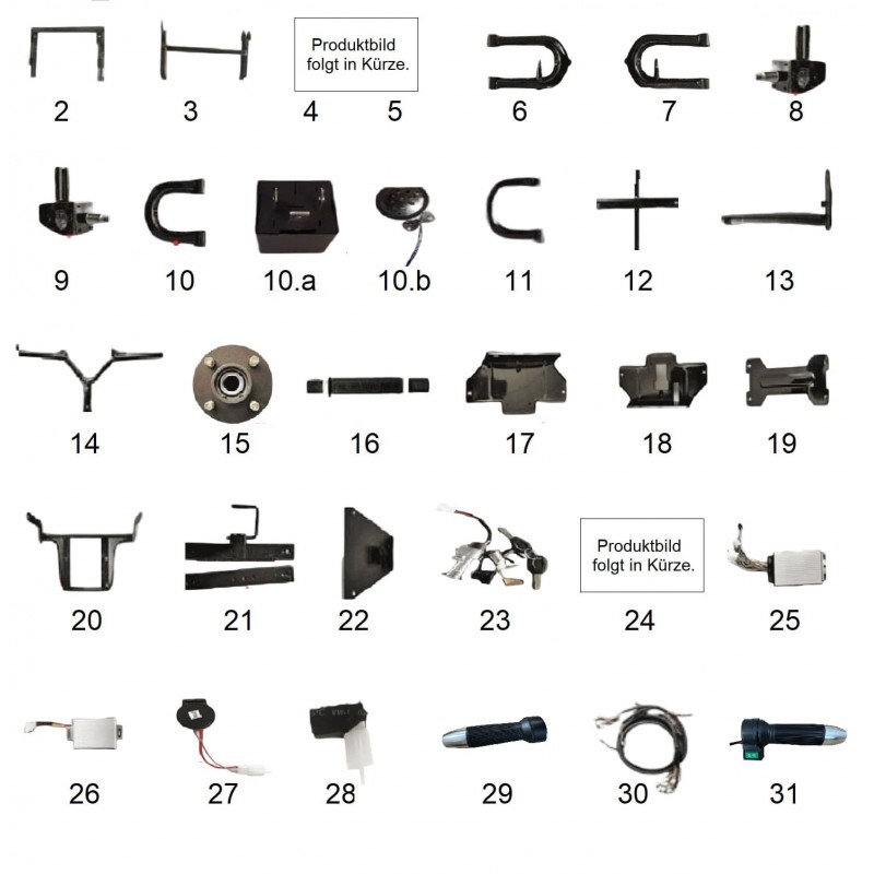 Folgende mechanische Ersatzteile für das Seniorenmobil Vita Care 4000 können Sie unter Ersatzteile Elektronik, mechanische Teile Vita Care 1000, 2000 bestellen, da diese mit den Teilen des Vita Care 1000 identisch sind: