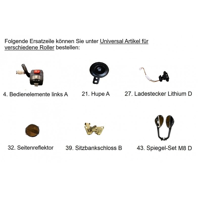 Folgende Ersatzeile können Sie unter Universal Artikel für verschiedene Roller bestellen: