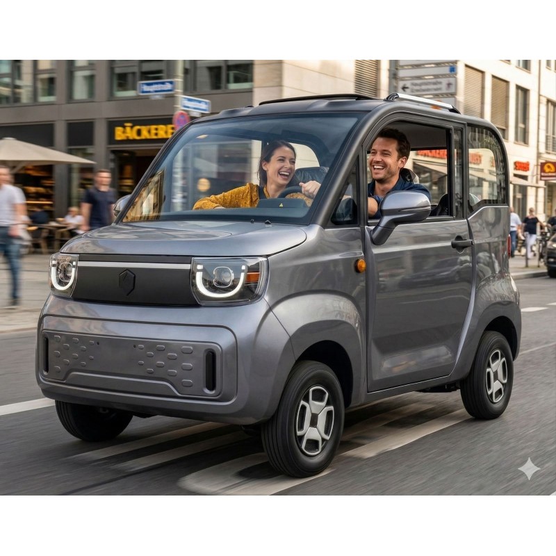 Kabinenroller „Breeze Base" – frischer Wind für Ihren Alltag! Geschützt vor Wind & Wetter mit Dachfenster, Heizung, Echt-Glas-Fenstern & 3-Punkt-Gurten. LED-Beleuchtung, Bluetooth-Radio, Rückfahrkamera – alles serienmäßig. Steuerfrei, kein TÜV, ab 10 € Versicherung/Monat, 4000 Watt. Über 90 % günstiger als ein Auto! Fahrbar ab 15 Jahren. Komplett aufgebaut geliefert. Jetzt umsteigen & sparen!