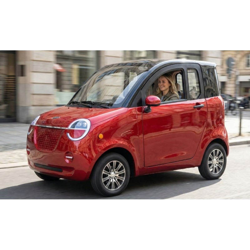 Genießen Sie mit dem Mopedauto "Dora" absolute Freiheit bei jedem Wetter. Dieses vollverkleidete Elektrofahrzeug bietet bequemen Platz für zwei Personen und ist die ideale, umweltfreundliche Lösung für den Stadtverkehr, Pendler und Kurzstrecken. Ausgestattet mit einem extrem leistungsstarken, fest verbauten 60V/100Ah Blei-Gel-Akku, erreichen Sie eine beeindruckende Reichweite von bis zu 100 Kilometern. Das Aufladen erfolgt unkompliziert und flexibel an jeder herkömmlichen Haushaltssteckdose.