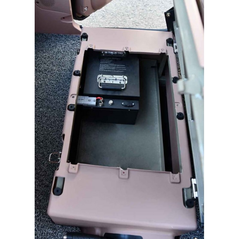 Die stabile Straßenlage durch 130 cm Fahrzeugbreite und die hydraulischen Scheibenbremsen sorgen für maximale Sicherheit. Während der Fahrt informiert Sie das digitale Display über Tempo und Ladestand, während das Bluetooth-Radio für die passende Unterhaltung im Cockpit sorgt.