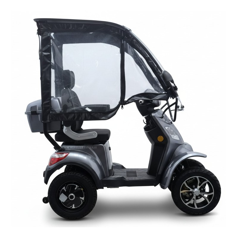 Elektro-Cityflitzer mit 45 km/h – kein TÜV, nur 1 € Strom/100 km, Versicherung ab 10 €.Fahrbar ab 15 mit AM-Führerschein oder mit jedem Autoführerschein. inklusive Plane, Herausnehmbarer Lithium-Akku – zuhause laden.
