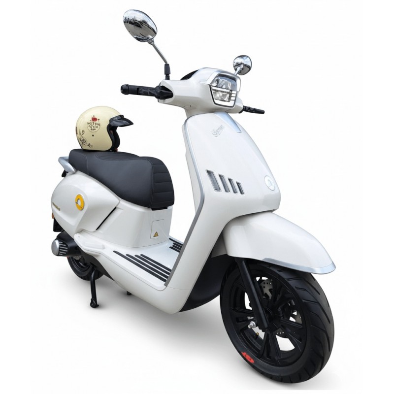 Der Elektroroller „Future“ verbindet modernes Design mit innovativer Technik. Sein eleganter Look vermittelt pures mediterranes Lebensgefühl – und das vollkommen emissionsfrei.