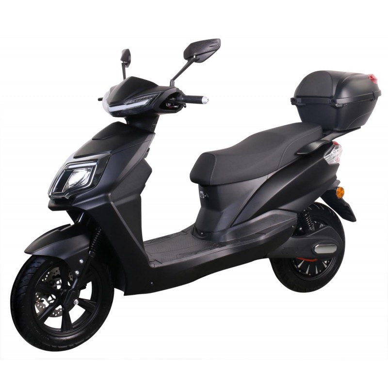 Mit einer beeindruckenden Reichweite von bis zu 85 Kilometern und einer Spitzengeschwindigkeit von 45 km/h lässt dieser E-Scooter die Konkurrenz hinter sich. Er kombiniert massive 2800 Watt Spitzenleistung mit einem stabilen Fahrwerk und extra großen Reifen für optimalen Komfort. Im Lieferumfang enthalten sind bereits ein Topcase und die passende Halterung, damit Sie sofort startklar für den Alltag sind.